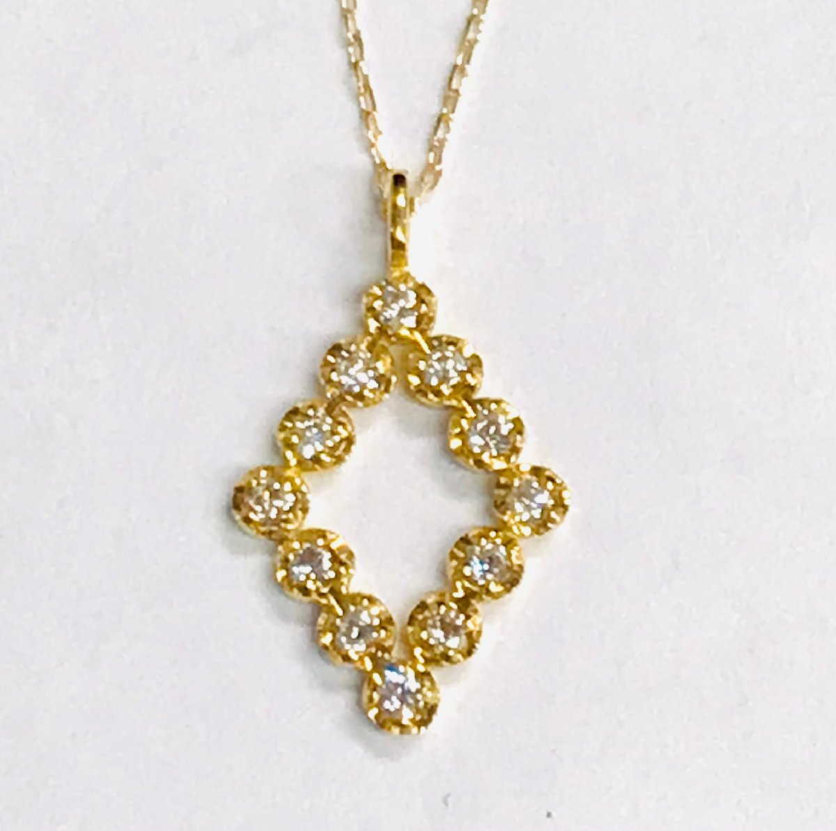 - K18 ゴールド ひし形 12Pダイヤネックレス D0.10ct qoj.Z0001