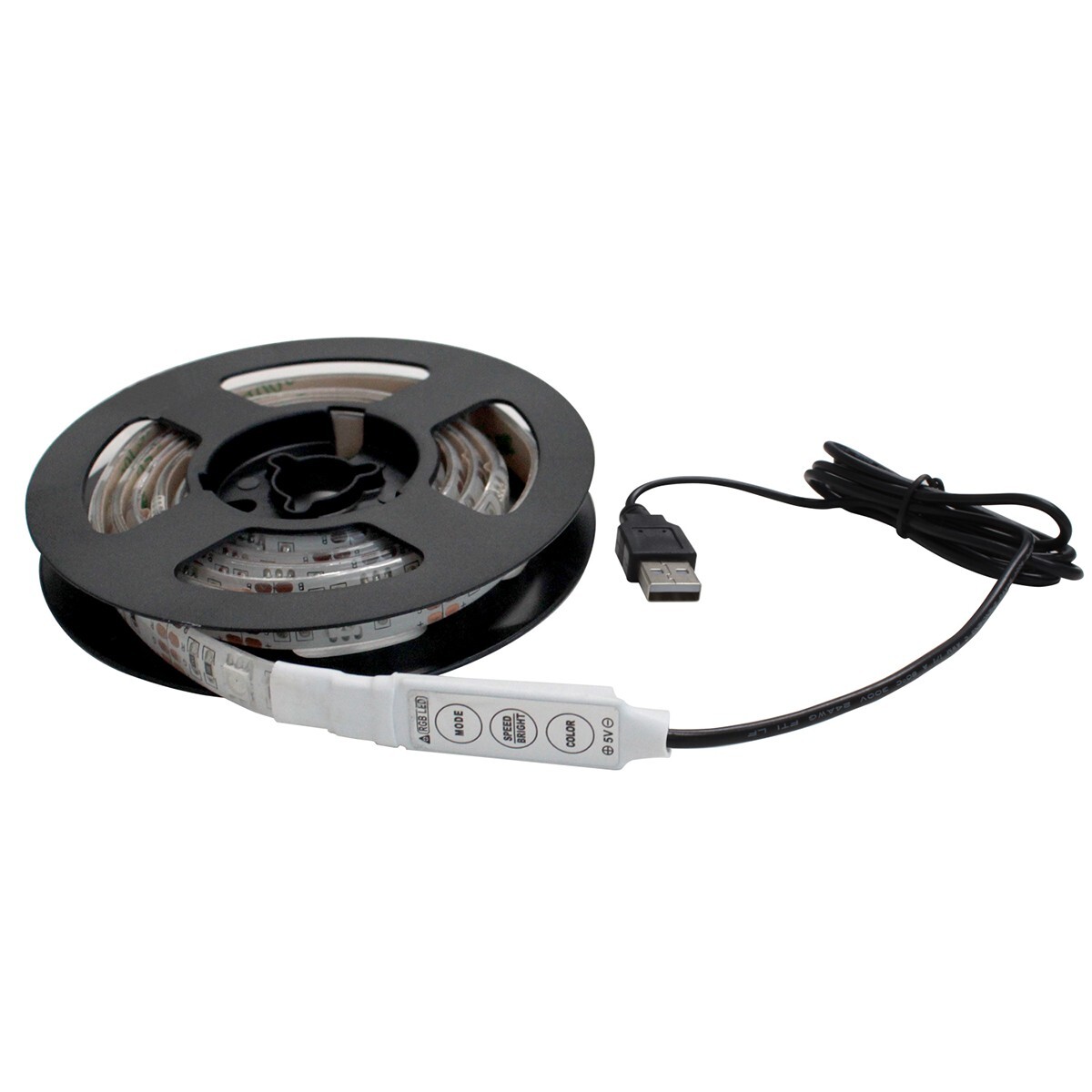 - USB LEDテープライト 防水 5V 150cm RGB 多色発光 調光器付き 3チップ 白ベース
