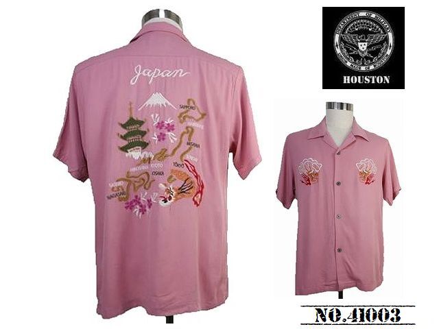> 【送料無料 35%OFF】HOUSTON ヒューストン 刺繍スーベニアシャツ 「MAP」柄 NO.41003 PINK_Lサイズ