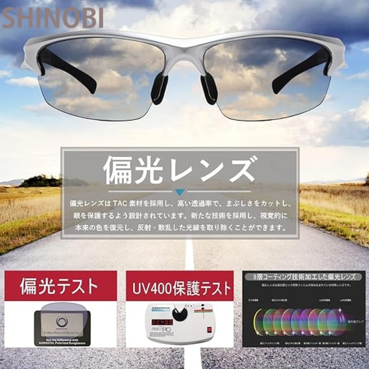 - サングラス メンズ スポーツ 超弾性耳掛 フレーム 偏光 uv400 超軽量 抗衝撃 運転/ランニング/野球/ゴルフ/登山/釣り シルバー