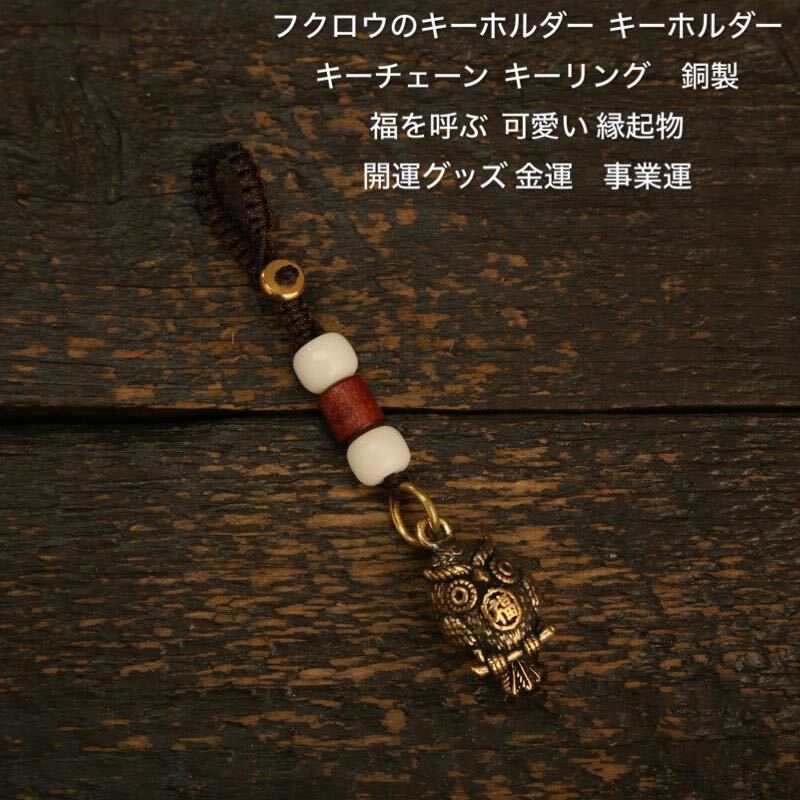 > フクロウのキーホルダー 銅製 置物 ふくろう キーホルダー 梟 キーチェーン キーリング 福を呼ぶ 可愛い 縁起物 開運グッズ 金運 事業運