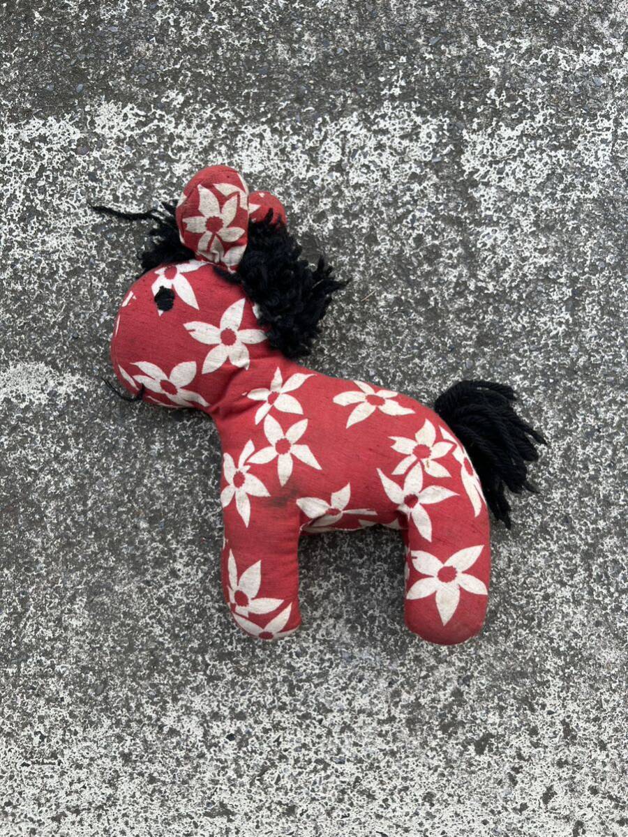 > 馬 ぬいぐるみ 古布 インテリア 花柄 オブジェ 抜染 型染 アンティーク 昭和 Discharge printing Stencil dyeing Antique