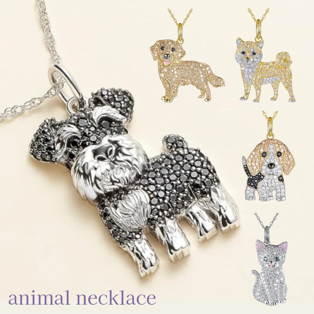 > 【5種から選択】【※購入後コメントください】ネックレス ラインストーン 5種の犬猫 キラキラ 首 アクセサリー アニマル 動物 犬 猫