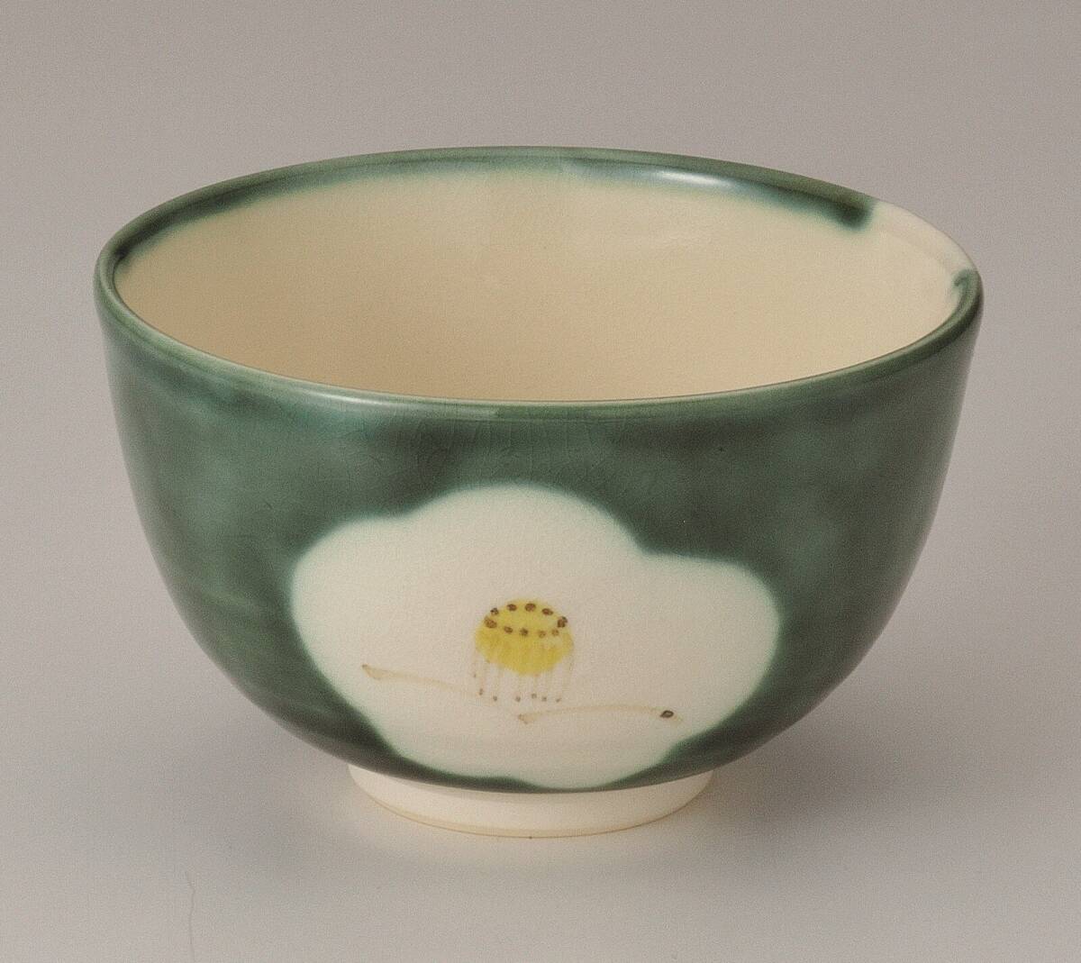 - 茶道具! ☆織部椿・抹茶碗☆ W207 新品 京焼 茶器 湯呑 抹茶 ギフト YAM
