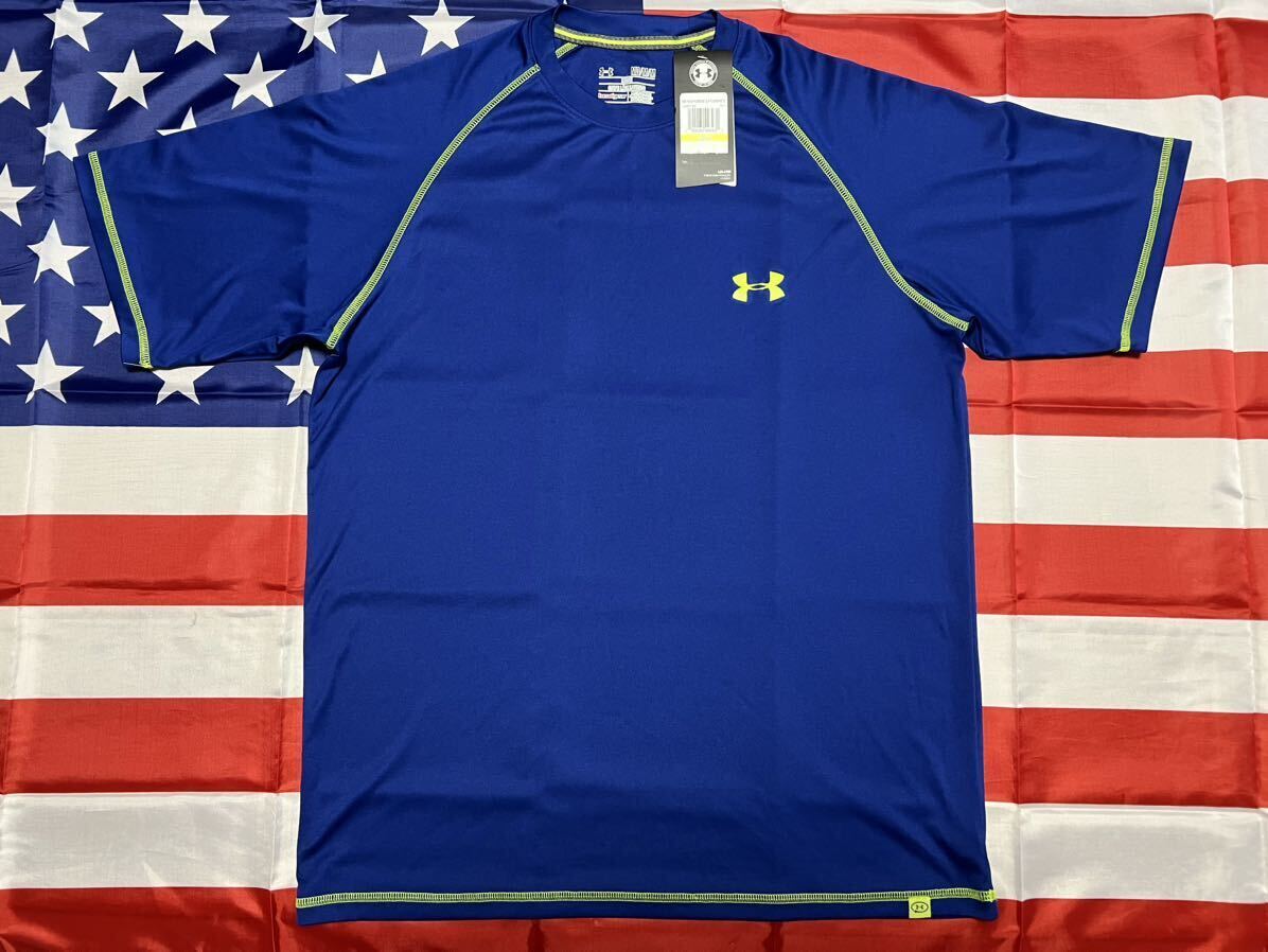> 新品未使用タグ付き under armor HEAT GEAR Tシャツ MEDIUM BLUE