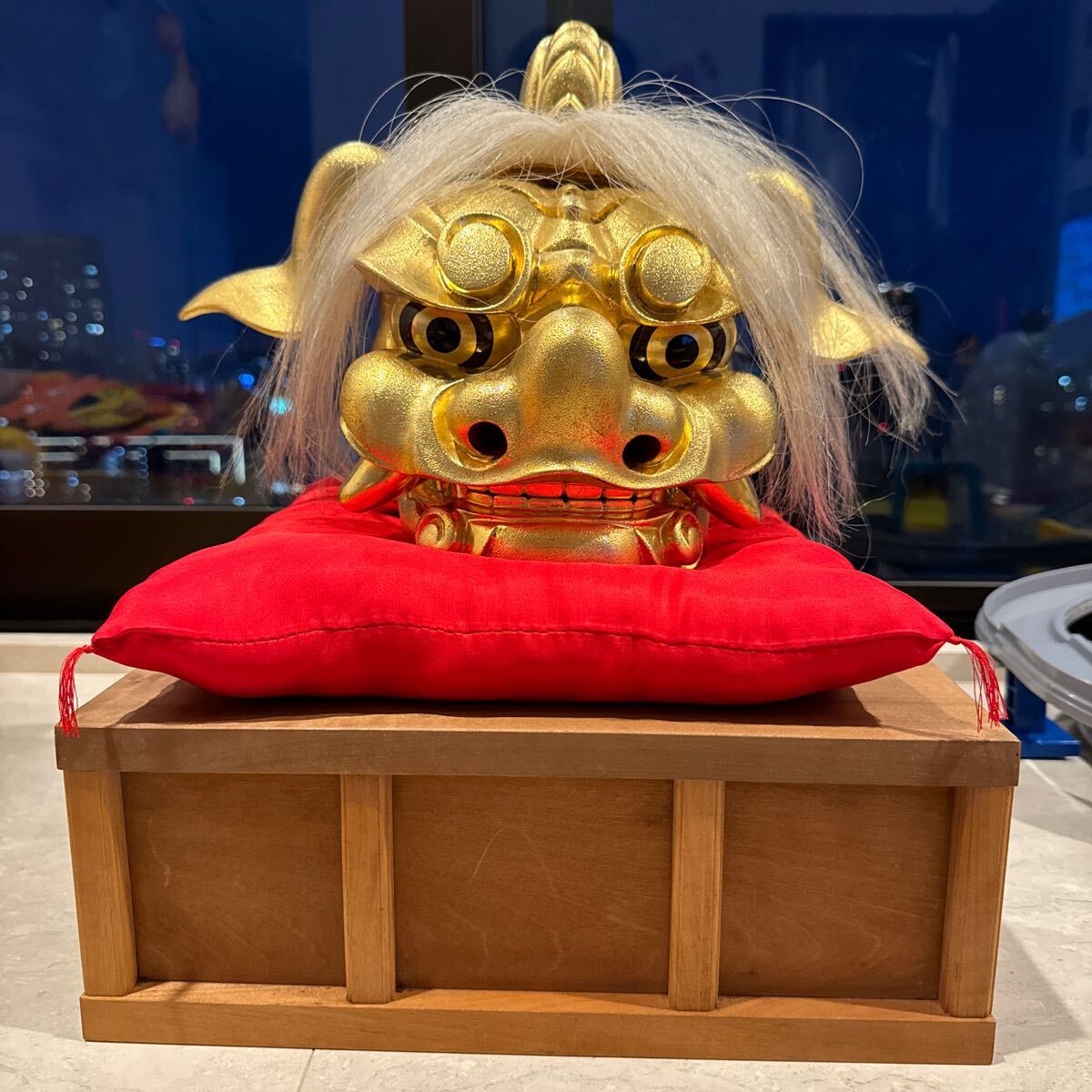 - 古美術黄金の獅子木彫り時代物台座付き貴重品