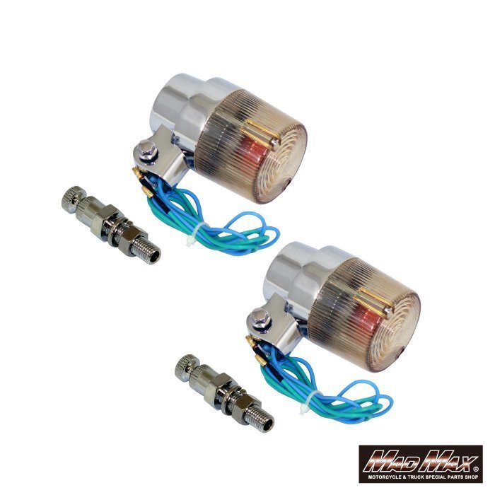 > バイク用品 汎用 丸型 ヨーロピアンウインカー 黄ばみ 取付ステー(ショート)付 2個SET/SR400 XJR GSX バンディッド イナズマ【送料800円】