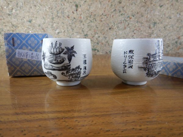 - 王様風呂 秋保温泉 ドリームランド 湯呑み 夫婦 ペア 032801 7x6.5cm