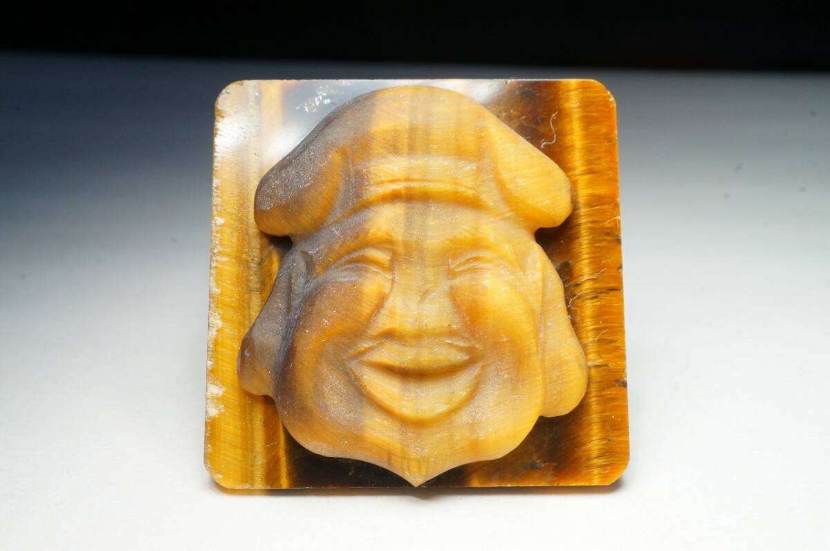 > 【即決特別価格!早い者勝ち!】希少!上質品!キャッツアイが綺麗なブラジル産タイガーアイ原石彫刻「恵比寿」ルース(虎目石)