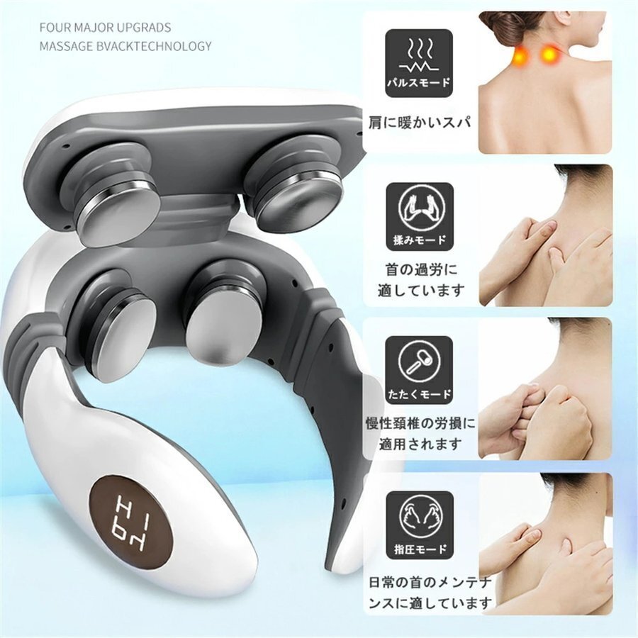 - ネックマッサージャー マッサージ器 低周波 温熱 EMS 筋肉 小型 軽量 USB充電式 全身ケア ストレスコードレス ギフト 健康器具 敬老の日