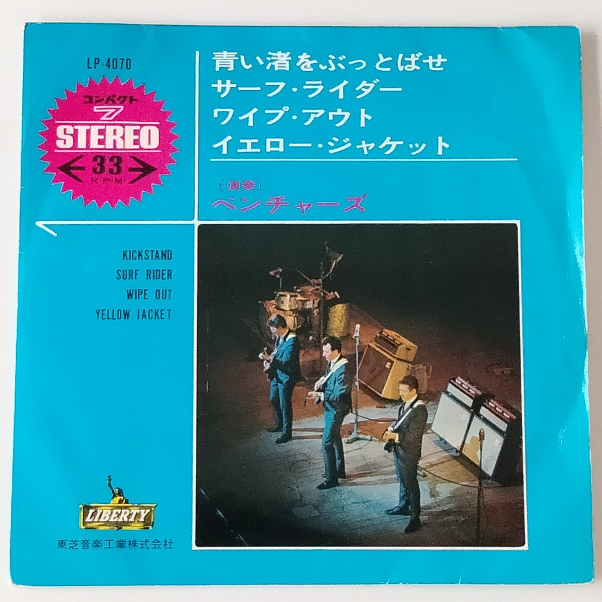 - 【コンパクト7/4曲入】ベンチャーズ/青い渚をぶっとばせ(LP-4070)THE VENTURES/KICKSTAND/サーフライダー/ワイプアウト/東芝音楽工業65年EP