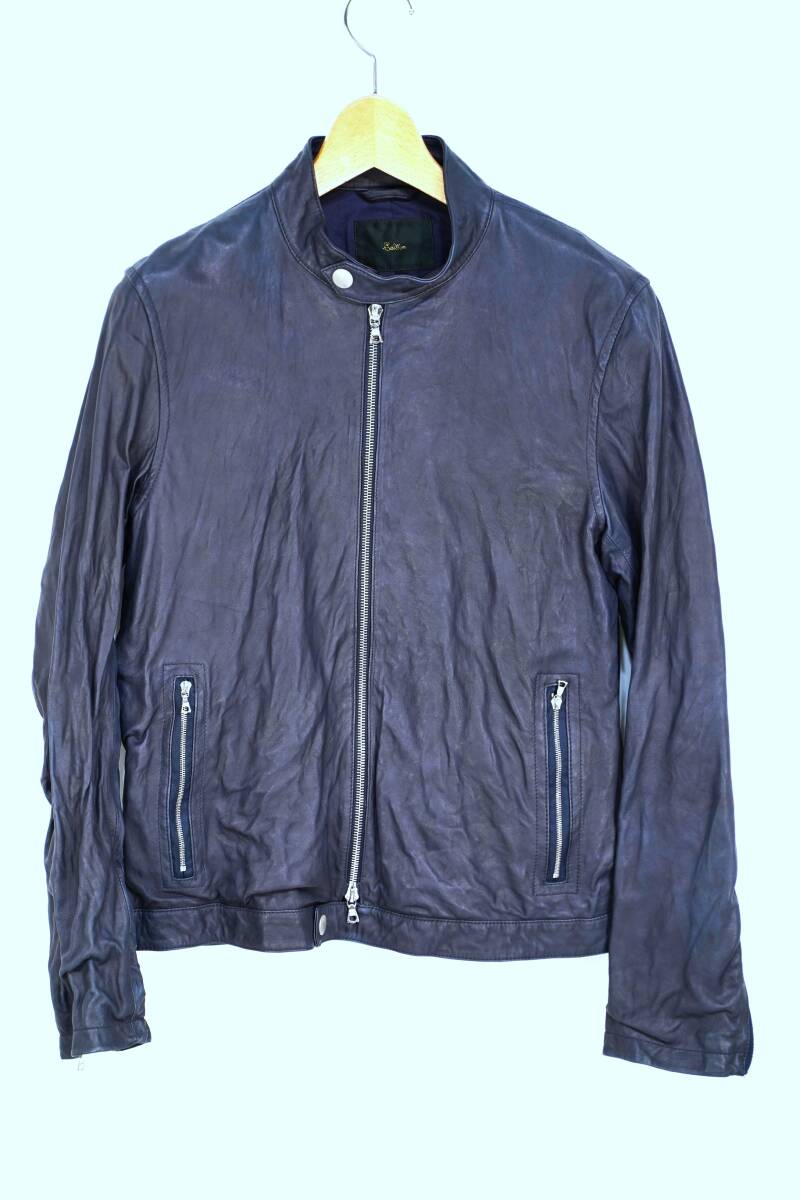 - EDITION TOMORROWLAND エディション 高級ラムレザージャケット M 完売 シングルライダース 濃紺 ダークネイビー riri