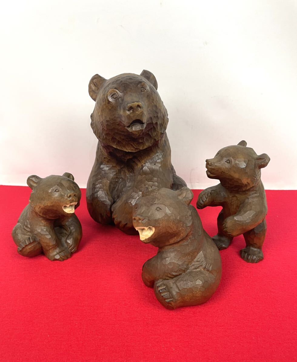 - ●希少 木彫り 熊 親子 4点 三好純男 みよし 銘 北海道 民芸 時代物置物 オブジェ 彫刻 郷土玩具●