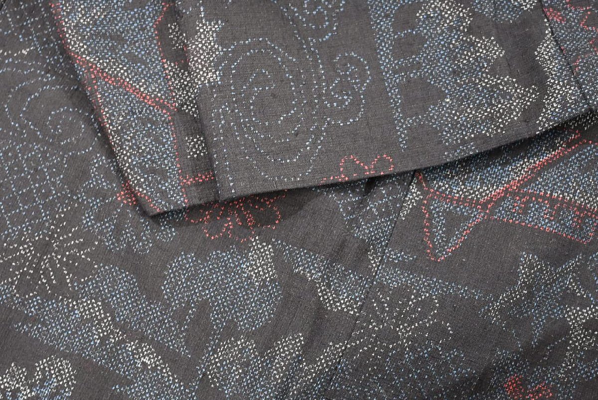> 紬 つむぎ 茶室 田舎家風景 籬 波 身丈148cm 裄丈63cm ★着物 pb-2784 桜庭呉服店