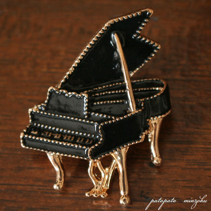> ピアノ ブローチ ブラック ミニチュア エナメル ピンバッジ アンティーク調 パタミン 楽器 ディスプレイ オブジェ アクセサリー