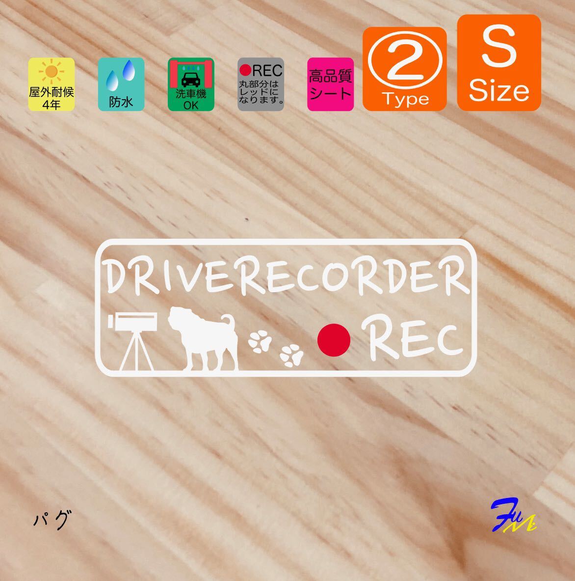 > パグ ドラレコステッカー 02 Sサイズ 文字(書体) 4種類から選べる 全28色 #drFUMI #dFUMI #ddFUMI #ddFUMIパグ #ドラレコ