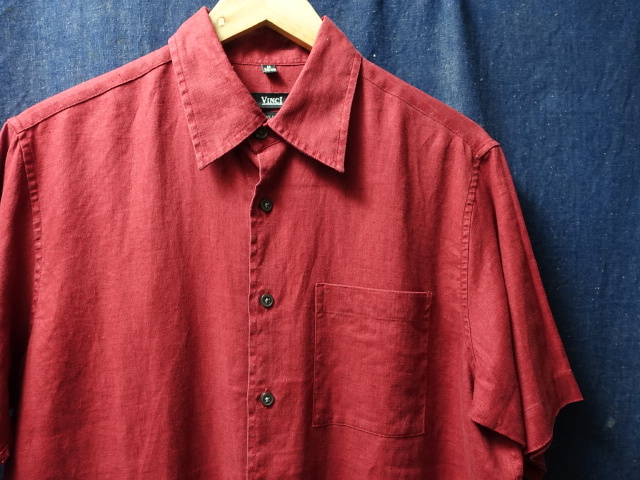 - USA アメリカ 古着 VINCI ヴィンチ 半袖 リネン 100% 無地 シャツ M / 51 古着卸