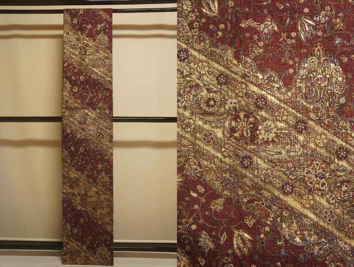 - 特選手刺繍深蘇芳色黒色よろけ縞地斜取花模様未着用袋帯[O15045]