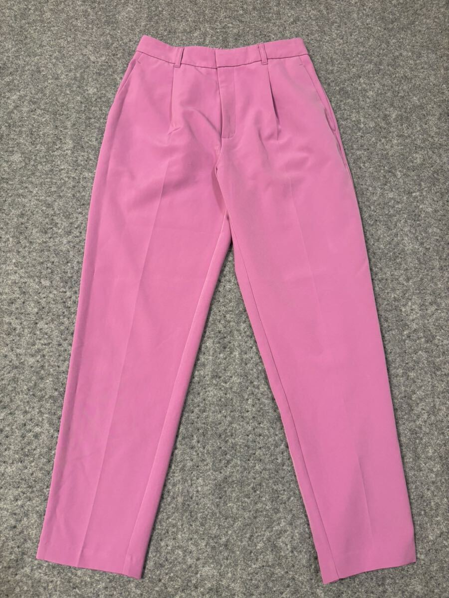- ストレッチ テーパードパンツ スラックス センタープレス ボトムス ズボン 牡丹ラベンダーピンク紫系 Mサイズ
