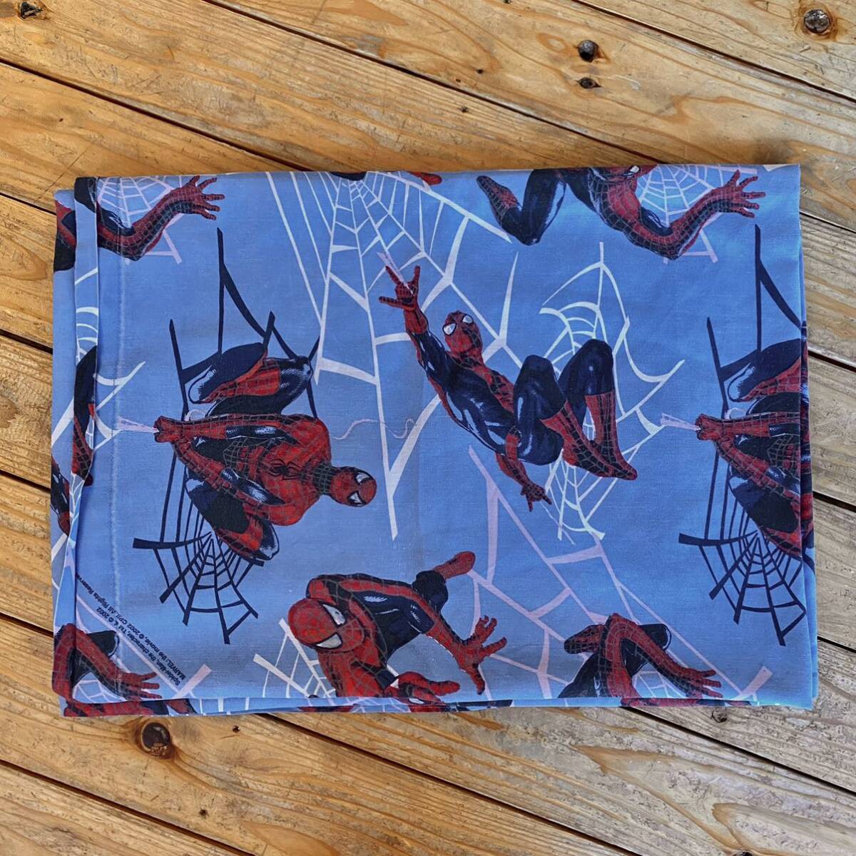- USAヴィンテージ ベッドシーツ スパイダーマン リメイク生地 アメコミ くも 蜘蛛 総柄 映画 素材 フラットシーツ アメリカ仕入 B2227