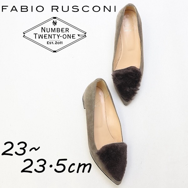 - ◆FABIO RUSCONI ファビオルスコーニ×NUMBER TWENTY-ONE スエード×ファー ポインテッドトゥ パンプス グレージュ×ダークブラウン 36 1/2