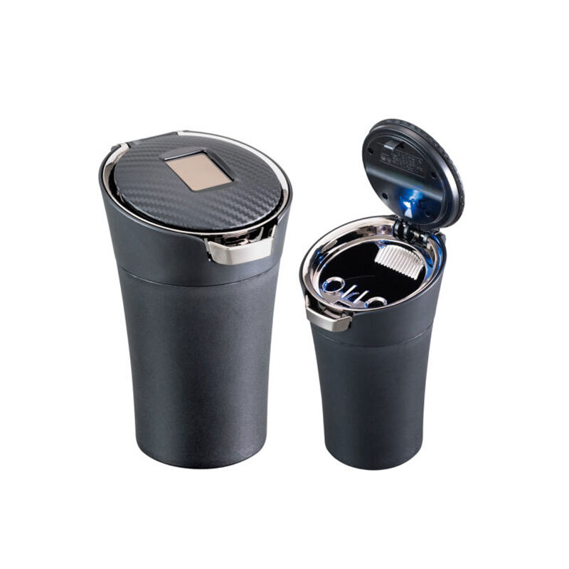 - カーボンソーラーアッシュ ブラック 灰皿 吸い殻入れ LED照明付 ソーラー充電 ワンプッシュレバー セイワ WA130