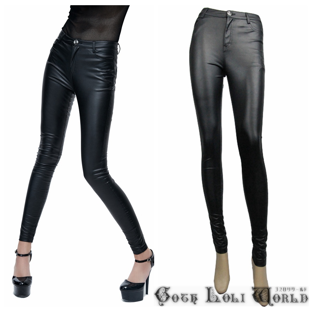 - PT055-L ゴスロリ 合皮 ストレッチ スリム パンツ ブラック 黒 ゴスロリワールド ゴシック パンク ロック ロリィタ ビジュアル系 V系