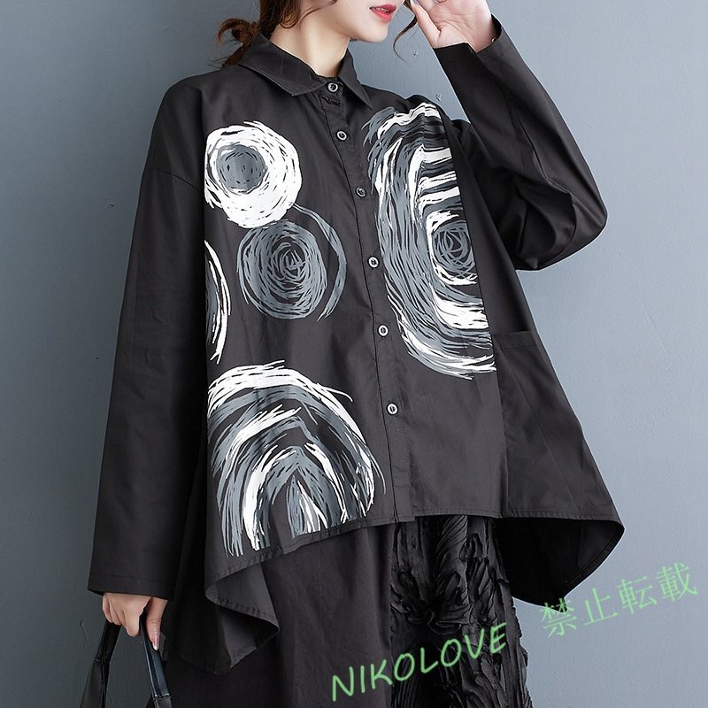- 新品カジュアル オシャレ ゆったり大きいサイズ 切り替 お花刺繍 長袖シャツブラウス F LE472