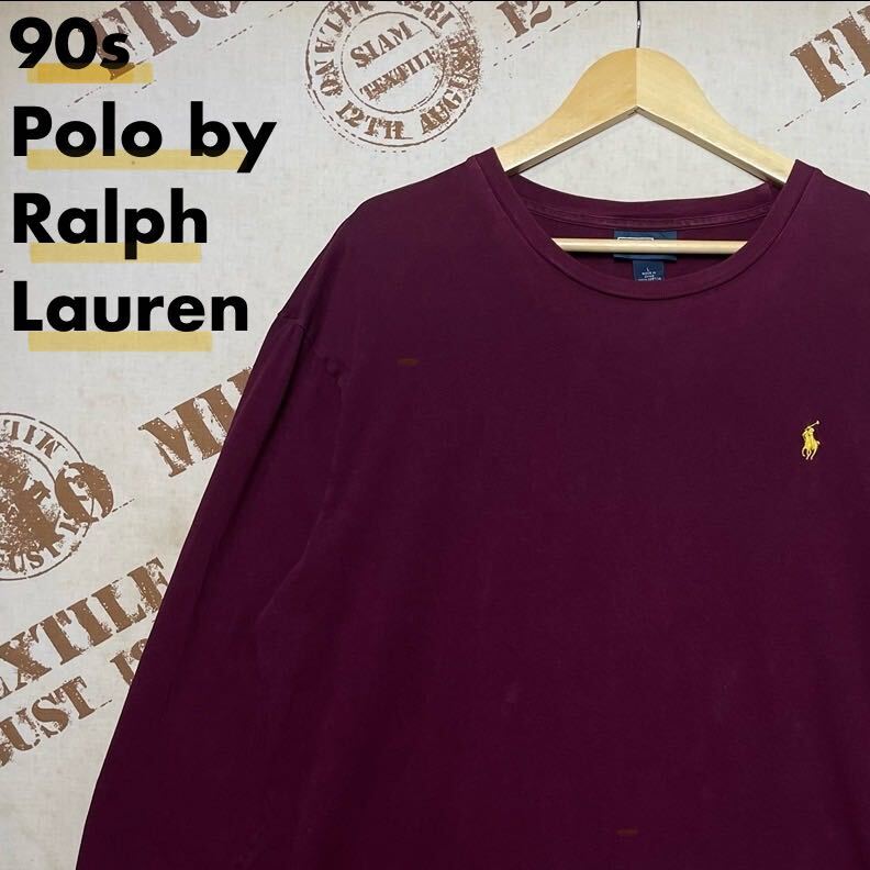 > 90s USA企画 Polo by Ralph Lauren ロンT ラルフ 90年代 アメリカ企画 ラルフローレン 長袖Tシャツ ワインレッド 刺繍 シンプル