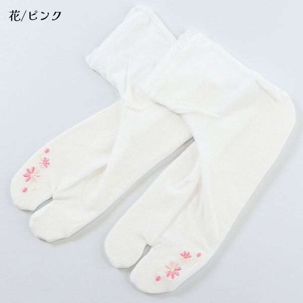 - ストレッチ足袋 東レ さららビューティー 夏足袋 さらさら快適な履き心地 コハゼなし 足袋 刺繍 フリーサイズ 花 ピンク メール便