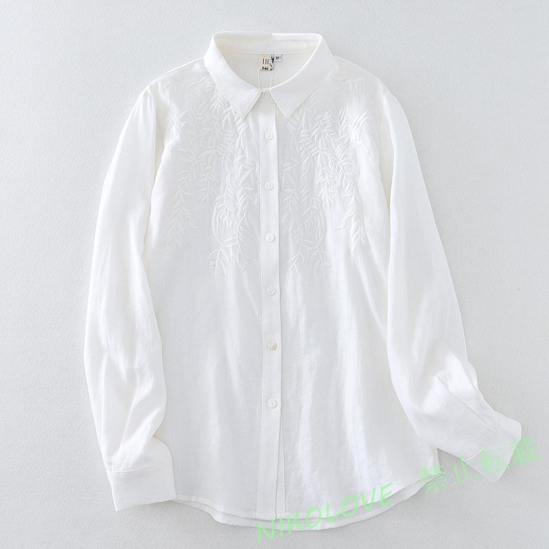 - 新品レディース カジュアル 復古 無地 綿麻 ゆったり大きいサイズ 長袖 シャツブラウス 白 LH282
