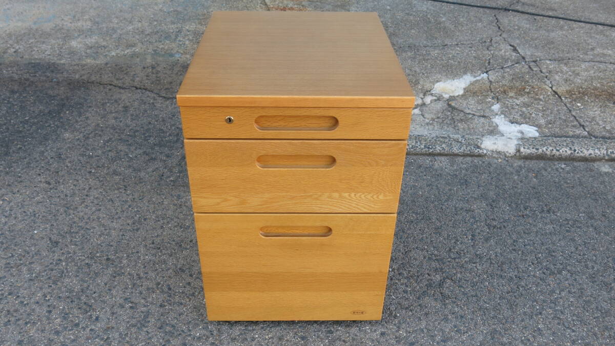 - 中古 浜本工芸 デスクワゴン インサイドワゴン 学習机用 キャビネット 3段 鍵付 キャスター不良あり 直接引取り歓迎