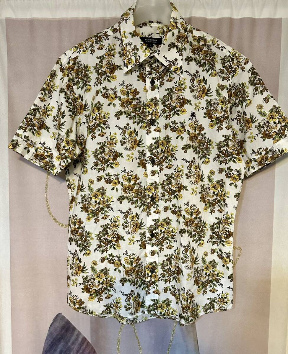 - バーバリー ブラックレーベル フローラル ボタニカル ホースロゴ 刺繍 半袖 花柄シャツ