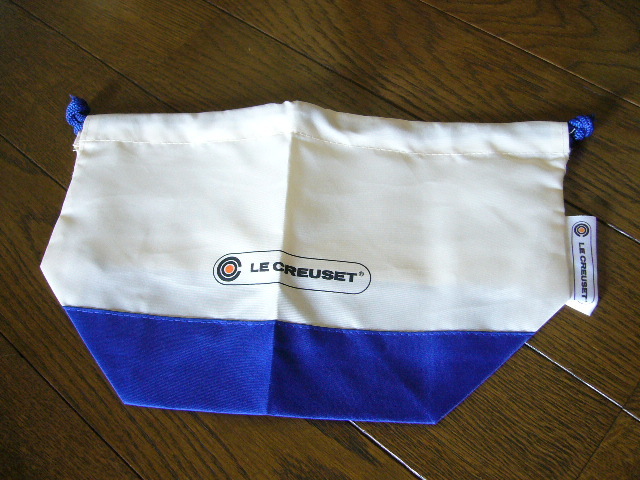 > LE CREUSET ル・クルーゼ オリジナルお弁当 包み 巾着袋 色青白 サイズH170-W270-D120mm 未開封 未使用 3