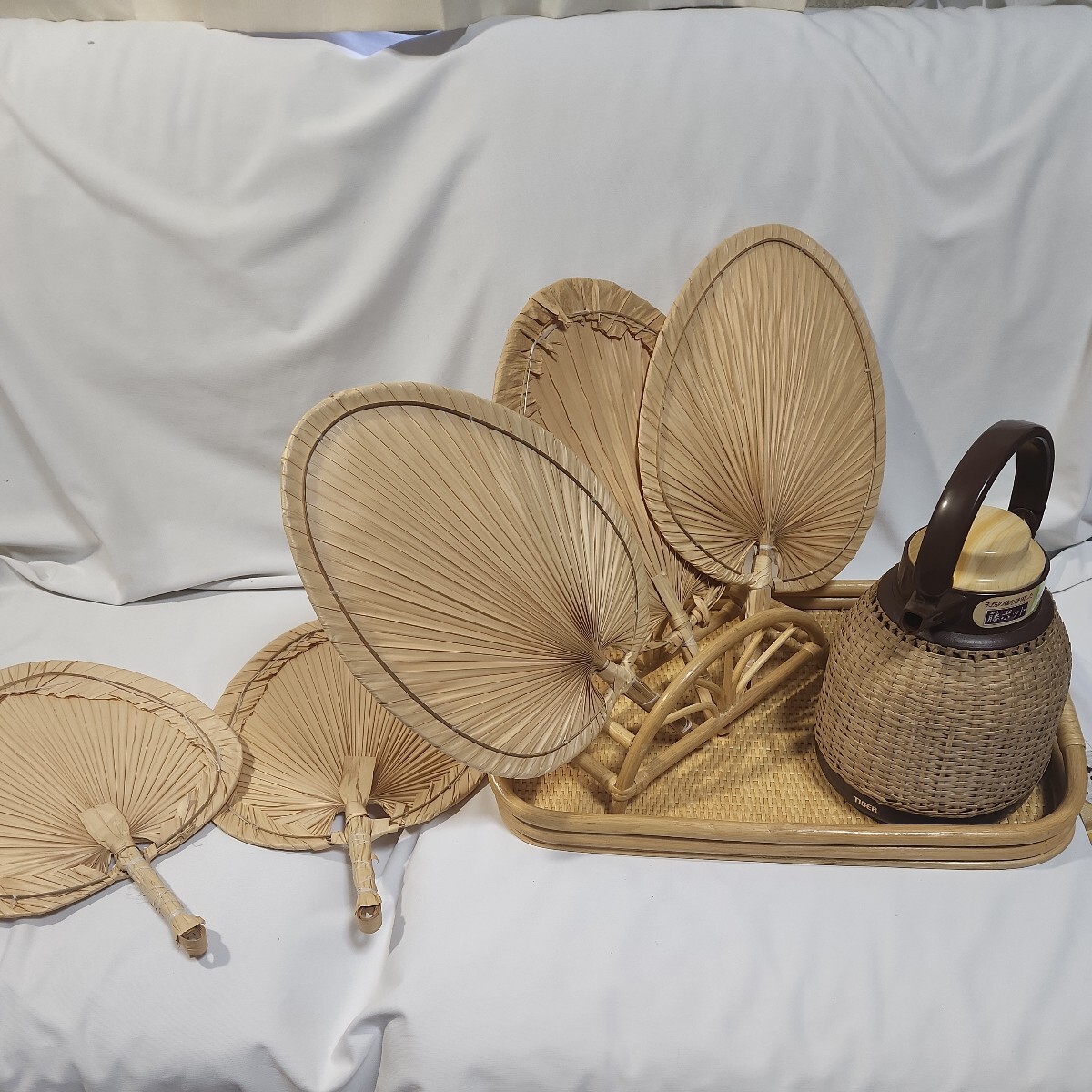 - 籐ポット お盆 トレイ うちわ セット まとめて 未使用 自宅保管品 PRC-A100 1.04L