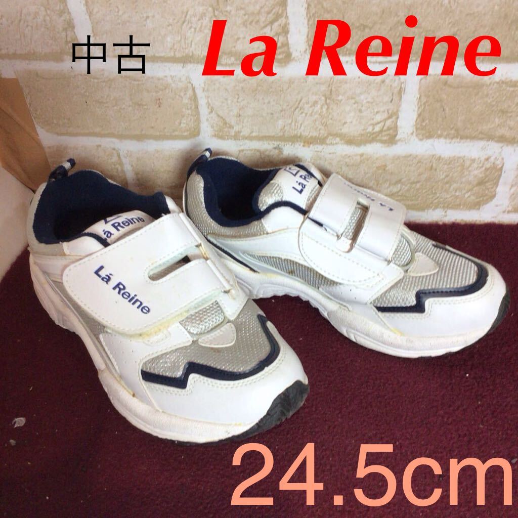 - 【売り切り!送料無料!】A-332 La Reine!スニーカー!24.5cm!白!ネイビー!シルバー!面ファスナー!着脱楽!軽量!中古!