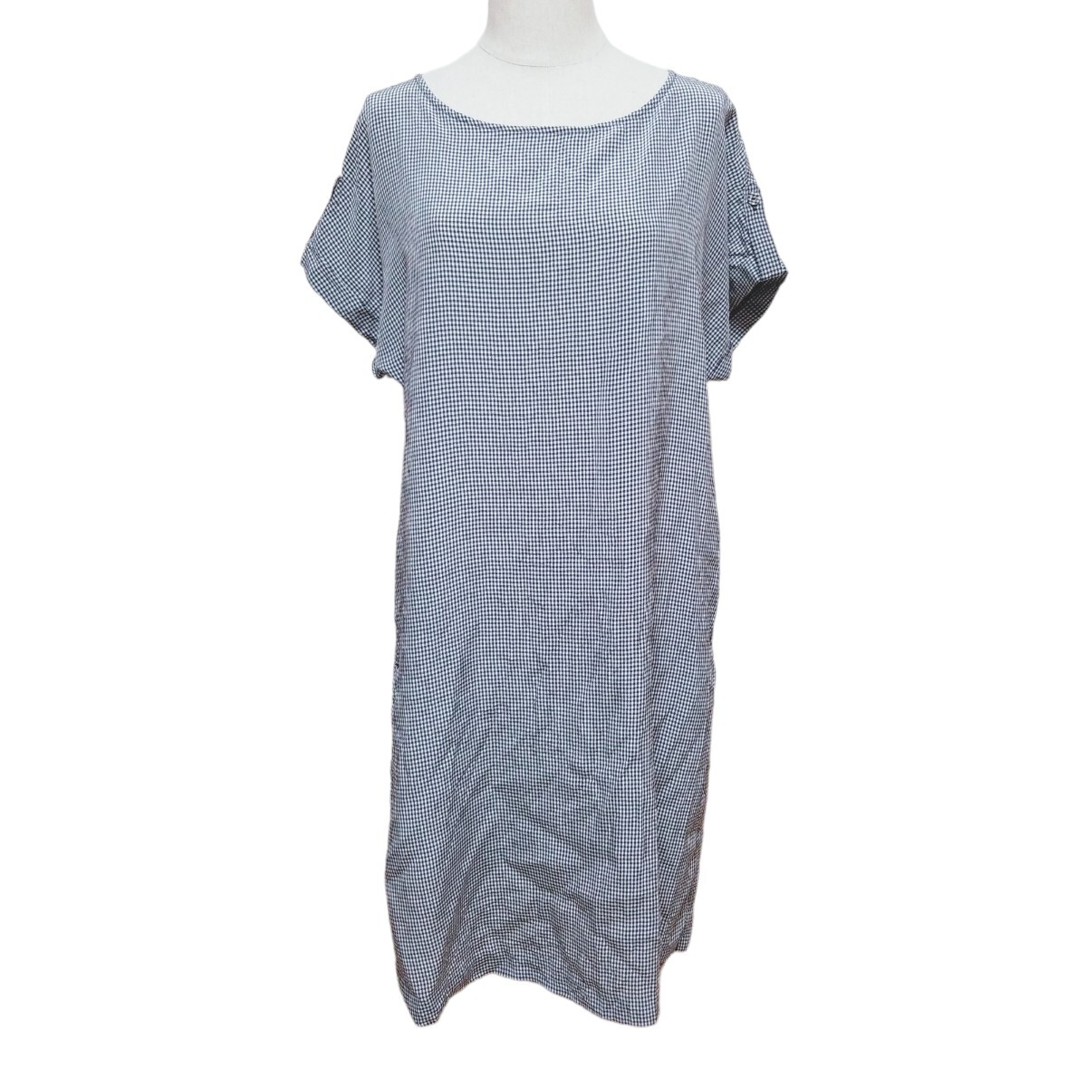 - 送料無料★Y1561 GLOBAL WORK グローバルワーク Iライン ひざ丈ワンピース 半袖 レディース L ブラック×ホワイト チェック柄 さらさら