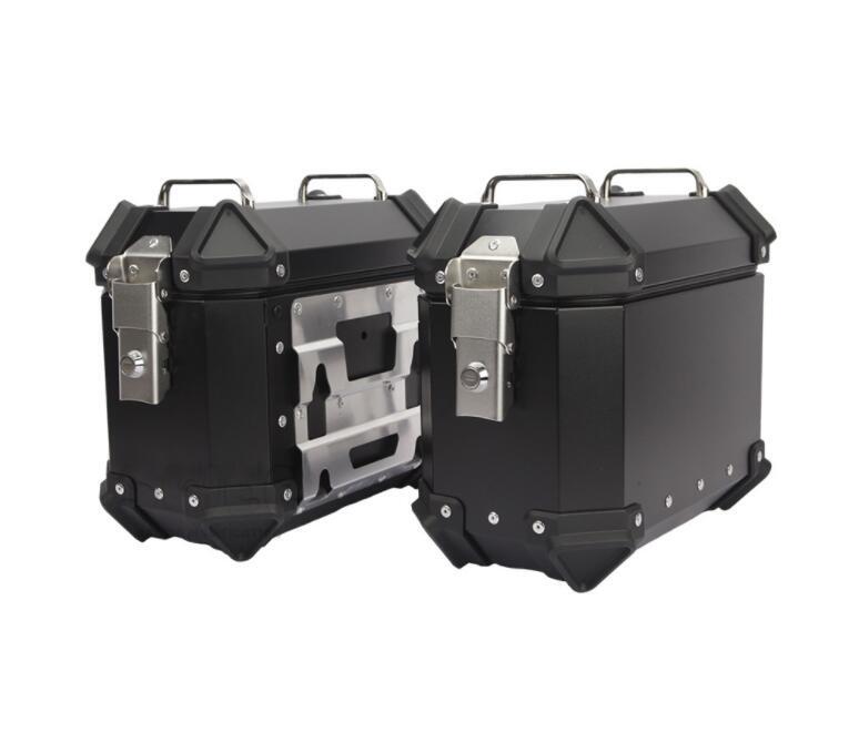 > 未使用 オートバイサイドボックス 各38L ルミ製 パニアケース バイク用サイドケース 左右セット鍵/サイドキャリア付き革の裏地防水簡単脱着