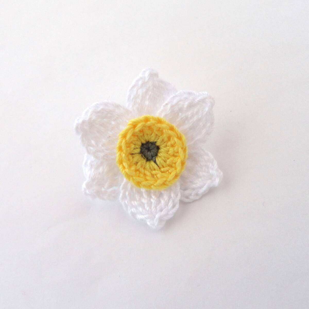 - 香りが漂いそう?!な水仙のブローチ*レース編み*WH*ハンドメイド*∵再販×11∵*b574