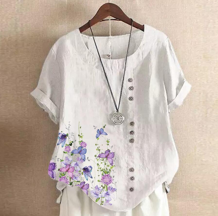 - 新品 人気推薦 /シャツ ブラウス トップス レディース チュニック 半袖 シャツ 花柄 トップス ゆったり 大きいサイズ リネン /34