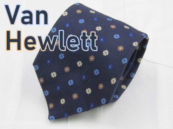 - 【ヴァンヒューレ】 AA 751 ヴァンヒューレ Van Hewlett ネクタイ 紺色系 植物ドット ジャガード