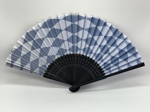 - 【扇・扇子】和装小物 粋な所作 『黒骨 ハーリキンチェック 23cm』 上品おてがる布扇子 寿扇 K1126J39