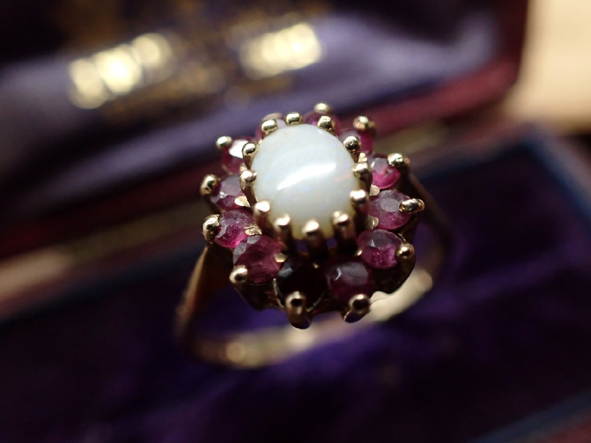 - イギリス 9金ヴィンテージリング オパールXルビー 16号