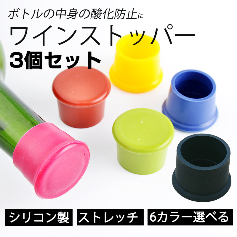 - ボトルストッパー 3個セット 色自由組み合わせ 保存栓 シリコン ワインストッパー 酸化防止 密閉 保存 ワイン栓 キャップ ワインセーバー