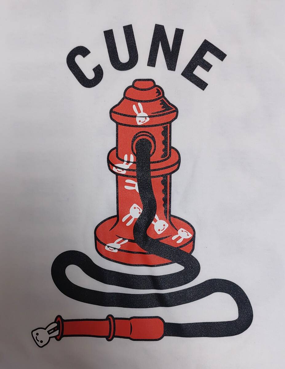 - 2023 FIRE! CUNE キューン『S/S Tee 消火栓』丸首 半袖 白 前後プリント CUNEウサギ L・身幅約56cm※未試着品/未使用品/商品タグ付き