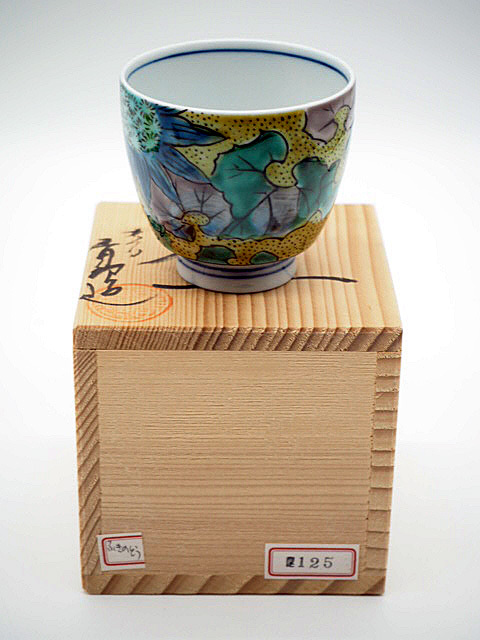 - No69 新品未使用 九谷焼 九谷青郊 盃 箱付・240618