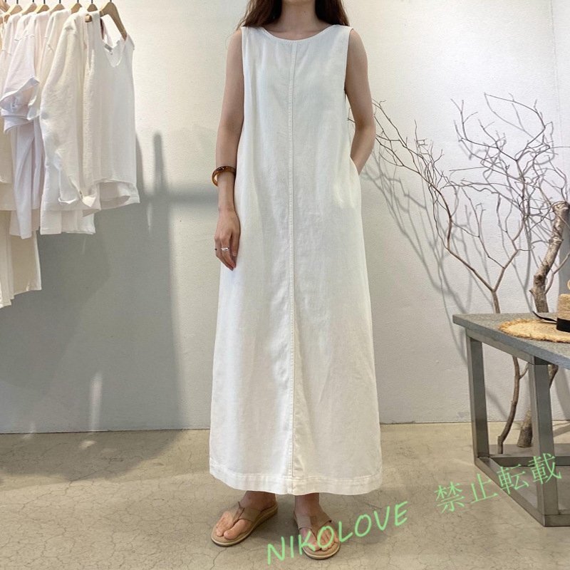 - 新品夏物 2色選択可 デニムワンピ バックオープン フリル 切り替え 体型カバー 着痩せ デニム シンプル フリー ホワイト LD310