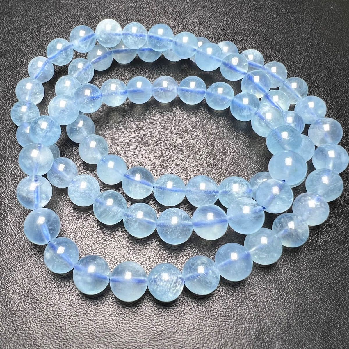 - 高品質 アクアマリン 6mm 54cm 3本巻きブレスレット 天然石