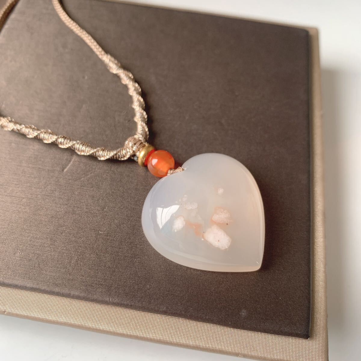 > ◇桜瑪瑙(チェリーブロッサムアゲート)+赤瑪瑙◇ネックレス◇ペンダント◇ハート形◇天然石◇パワーストーン◇巾着袋付◇プレゼントにも