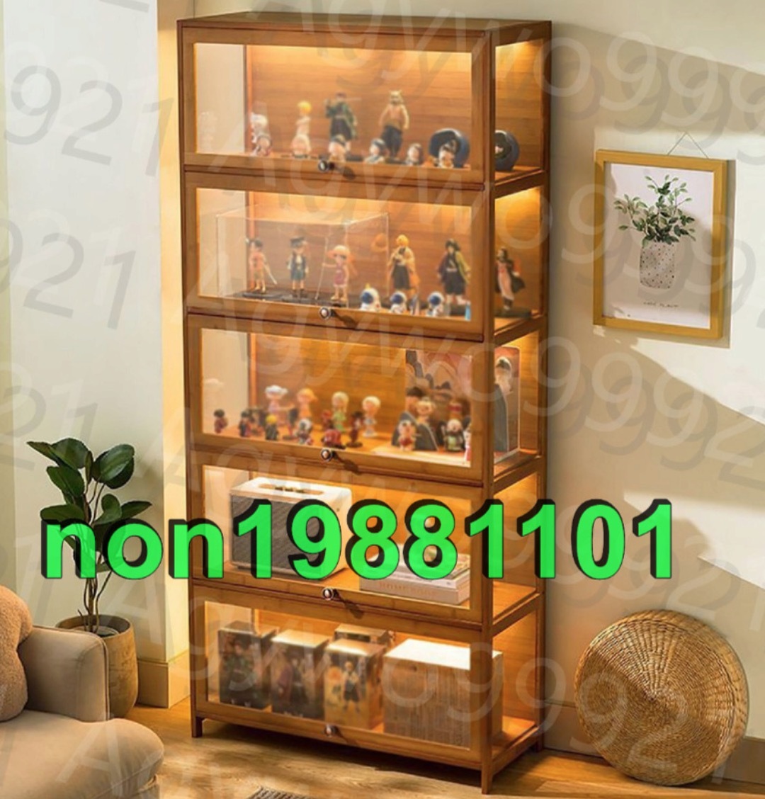 > コレクションケース ディスプレイキャビネット コレクションケースショーケース アクリル ショーケース 天然竹フレーム 62x32x172cm